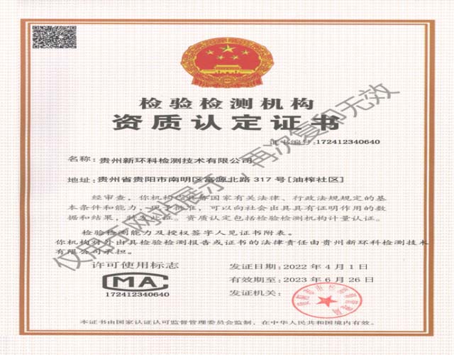 具有贵州省质量技术监督局颁发的《检验检测机构资质认定——计量认证(cma)》证书。