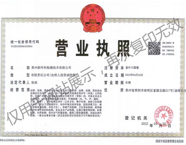 贵州新环科检测技术有限公司是一家从事室内外环境、公共场所卫生、水质、集中空调卫生检测、环境监测、放射诊疗设备防护检测等技术服务的第三方专业检测机构,主要技术岗位人员均具有本科及以上学历。公司拥有现代化科技检测设备和检测技术,科学的检测实验室,以“科学、公正”为原则,严格执行国家检测标准,让每一个检测样品都具有权威认证...... 【更多】