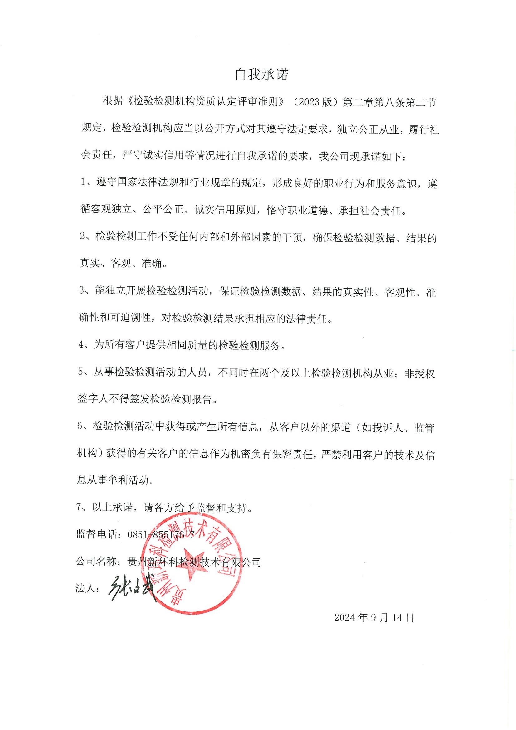 关于本机构检测技术服务的自我承诺 -凯发棋牌